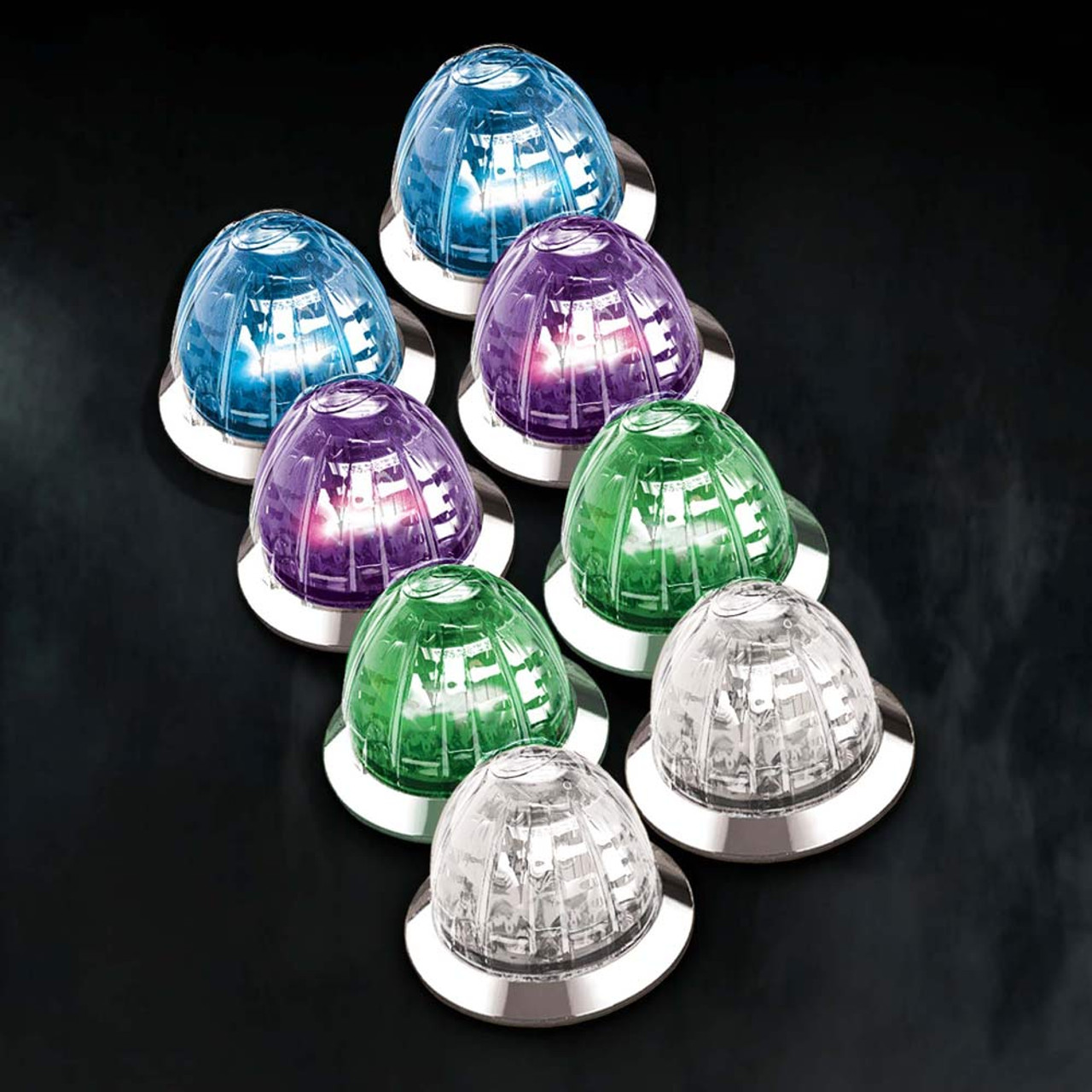 34 Mini Watermelon LED Light With Chrome Bezel Available In Amber Red LEDs with Amber Red Clear Lens Choose Above. We offer both incandescent watermelon lights LED watermelon lights Universal Peterbilt watermelon lights in a variety of colors sizes styles. Some Options Listed Below.